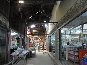 さて、ラーンクラトゥム市場の南端から、まだ見ぬ北端を目指して歩いて行きましょう!淋しい市場ながらも生活用品はある程度揃うみたいです。薬屋に…ここは服屋かな? 店内には何やら他の商品もありそう。外のこの陳列が駄菓子屋みたいで懐かしいですね~ ^^えと、ここは…八百屋みたいですね。品揃えが滅茶苦茶少なめですが ^_^;)閑散としつつも商店が並んでいるのは、この辺りまで。この先は、こんな光景になっちゃいました。見事なまでのシャッター街。ずーっと続いています。でも今日は振替休日なので休みの店もあるのかもしれませんね。それに町工場? 作業場? そんな感じの一角も結構見受けられました。あと、たまーに商店や人家がポツポツとといった感じ。こんな一層淋しい光景の中をひたすら進んでいくと、漁具屋ですね。ってことはこの辺りでも漁をまだやってるってことですか。で、この店からほどなく北端の出口に到着しました!左が市場の出口なんですが、こちらから見てもやはり暗闇への入口って印象ですなぁ ^_^;)グーグル・マップで確認すると、ラーンクラトゥム市場の全長は300m弱ってところ。出た左側の運河沿いには、古びたあずま屋が。 一心団結200年あずま屋 ラーンクラトゥム市場住民 1982年10月21日と書いてあります。なかなかツッコミど…ではなくて興味深い点満載ですね。200年ってまさかここに市場ができてからの年数なわけは無いと思うのですが。長くても100年前後かと。うーん、何の年数なんでしょう?それに思ったよりも新しいんですね。まだ30年ですか。でも作られた当時はまだ舟の往来がかなりあったことが想像できます。さらにこのあずま屋が奇妙なのはですね。鳥かごがぶら下がっているんですが、その中にいる鳥が…なんと、カラスなんですよ。これにはビックリ。タイではカラスって縁起の良い鳥なんですかねぇ??<交通費>歩いただけなので:0バーツここまでの合計:50バーツ※旅は2012年8月13日(祝日)に行いました。つづく