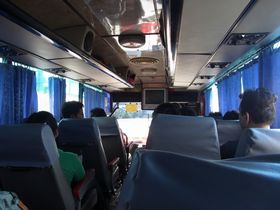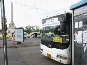 運良くちょうどやって来たバンコクのモーチット・バスターミナル行きバスに乗車!実は私のバンコク周辺1日旅シリーズで長距離バスに乗るのは、これでまだ2度目。最初は、スパンブリー県のサームチュック百年市場からドラえもん寺ことワット・サンパスィウまで乗った時。どうも長距離バスって乗り慣れてないので避けちゃうんですよね。でも今回はコレしか足が無いので止むを得ず乗車です ^_^;)車掌のおばちゃんに、地下鉄のラートプラオ駅まで、と告げます。「通らないよ。ラームイントラー通り経由だよ」との返答。ぐえっ、そうなんだ。じゃ、仕方無い。ついでに終点まで行っちゃいましょう。と言うことでモーチット・バスターミナルまで。運賃45バーツ也。バスは国道304号線、スウィンタウォン通りを北西に突っ走って行きます。車内のエアコンの効きがイマイチで暑いのを我慢しつつ疲れが出たのかそのうち夢の世界へ(笑)気が付いた時には、ちょうどミンブリーの市街地を通過中でした。ここからラームイントラー通りへと入ると若干渋滞…。こりゃ到着までかなり時間がかかるなぁ。ようやくカセサート大学のあるバーンケーン交差点で左折。パホンヨーティン通りを南下します。暫くすると「メジャーです。ここを過ぎたらモーチットまでもう停まりませんよ!」と車掌さんが叫ぶではないですか。うーん、モーチットまで行ってみたいから、ここは乗り続けることにしましょう。そのメジャー・シネプレックス・ラッチャヨーティン店前で停車。おおかたの乗客はここで下車。みんなよく知ってるんですね。当たり前か。残るはカップル2人と、私の3人だけ…。ラッチャヨーティン交差点から西の方角へ高架を走り、なんだかさびれた一帯へと下りてきました。それからが長く感じましたねぇ。モーチット・バスターミナル敷地に入っても、ぐる~っと回ってようやく停車。「メジャーで降りた方が乗り継ぎに便利だったのに」「いえ、長距離バスに乗り継ぐんで」と運転手さんとカップルが会話を交わしています。やっと着いたー!走り去るバスを慌てて撮ったのでピンボケになっちゃいました m(_ _)m時刻は、16:54。ナコーンヌアンケート古市場最寄のバス停から1時間47分かかったんですね。モーチット・バスターミナルに来るのって、まだ2度目なんですよ。と言っても1度目は十数年前に訳も分からずに来ただけなので、実質今回が初めてと言えるかと…。夕刻の巨大バスターミナルは、さすがにお客さんで混雑してます。でも今回ここに来たかった理由は他にあるんですよね。目当てがどこにあるのか分からなかったんですが、人の流れを注意深く観察して、見当をつけた方へと歩いていくと・・・あったーーーー!!路線バス大集合!!実は、楽天ブログ仲間のしゅ☆じんさんのブログでモーチット・バスターミナルに路線バスが勢揃いしている写真を見て以来、是非ともこの目で実際に見てみたいと思っていたんですよ ^^カッコ良過ぎです。まるで戦隊ヒーロー大集合ショー!(笑)数多くの路線がここ始発だからこその光景なんでしょうね。出入りする路線バスに轢かれないよう注意しながら写真を撮り、満足満足。じゃ、帰ることにしますか。ここ始発の77番無料バスに乗車。BTSモーチット駅からBTSに乗り換えたのでした。これにて今回の旅は終わりです。バンコク東方ってあまり足が向きませんけど、なかなかどうして、素晴らしい見どころが沢山あるんだと気付くことができました。最後までお付き合いくださいましてありがとうございました!次回シリーズは、個人的にかなり気になっている北西地域の未踏破ポイント穴埋め旅です(笑)<交通費>モーチットまでのバス:45バーツ77番バス:0バーツここまでの合計:133バーツ※旅は2012年5月1日(祝日)に行いました。おわり