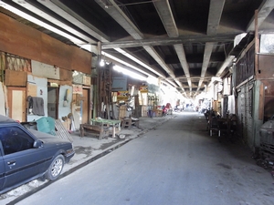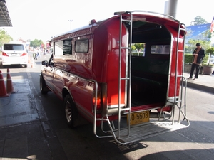 クロントイ・スラムの路地からまた高速道路下に出てしまったので、このまま高速道路下を突っ切って、西からケーハ・パッタナー通りに入ることにします。ここは雨も強烈な直射日光もしのげていいでしょうね。でもその分、暗いし不衛生な気がしなくもないですが。この車は何のために小屋に組み込んであるんだろう?しばし立ち止まって考え込んでしまいました(笑)そのまま歩いていくと、高速下を横切る通りに出ました。直進すると、5年半前に迷い込んだ高速下のロムクラオ・コミュニティなんですが、今回はここを左折。ほんの数十メートル歩くと、ケーハ・パッタナー通りの西端に辿り着きました。正面の道を奥まで行けば、さっきの70ライ十字路です。ここで心変わり。右へ歩いていきますか。というのも、グーグル・マップのストリートビューでこの辺りを眺めていたら、右の路地にソンテオが走っているのを見つけたんですよ。実はそれに乗りたくてクロントイ・スラムまで来たのです(笑)右へ道なりに歩いていくと、あれは、クロントイ港の港湾労働者住宅なんでしょうね。…なんて思っていると、ソンテオが来た!行き先を確認する暇がなかったけど、ええい、乗り込んじゃえ。時刻は、12:27。ケーハ・パッタナー通りに入り東進していると、公務員らしき制服の女性が下車。クロントイ・スラムの細い路地に消えていきました。そうですよね。普通の人だって普通に生活しているんですよね。数十年前ならともかく、今ではそんなに劣悪な状態ではないんじゃないでしょうか。勿論70ライ十字路に軒を並べるNGOや支援組織の援助の賜物でもあるんでしょうけど。ソンテオは70ライ十字路を過ぎたどん詰まりで停車。終点でした。運転手に運賃を支払います。8バーツ也。時刻は、12:32。車体を確認すると、「70ライ-クロントイ」と。じゃ、今度は折り返しに乗って逆の終点まで行ってみますか。でもしばらくどの車も出発する気配が無いので周囲を散策。すると「70ライ エカマイBTS クルアイナムタイ」と書かれたソンテオが佇んでいるではないですか。さっきクロントイ・スラムに来た時に見かけたのが、それかな。ちょっと探りを入れてみましょう。近くのジュース屋台でコーラを買いつつ、ここ発着のソンテオ路線の行き先を尋ねてみると、「クロントイ市場とエカマイ駅行きがあるけど、 エカマイ駅行きは朝夕しか出てないよ」とのおばちゃんの返答でした。さっき見かけたのはもう昼の時間帯なんだけど。うーん。突っ立って待っているのも何なので、ケーハ・パッタナー通りをコーラを飲みつつ散策しながら待ってますか。西へ向かって歩いていると、こんな車が。というかクロントイ・スラムではよく見かけます。最初これもソンテオだと勘違いしていたんですが、いわゆるシーローっていうトゥクトゥクみたいなタクシーですよね。結局さっき70ライ行きソンテオに乗った場所まで歩いて来たところでようやくクロントイ市場行きソンテオが登場。乗り込みまーす。時刻は、13:00ちょうど。くねくねと路地を進みクロントイ港の西ゲート前に出たソンテオは、47番バスなどの起点バス停前を通過して北上していきます。高速道路をくぐったところで左折。そしてまた北上し、クロントイ市場メイン・ゾーンの道を挟んだ西側に入り込んで停車。ここが終点なのか。時刻は、13:11。せっかくクロントイ市場に来たので買い物して帰りましょう。キロ60バーツの立派なマンゴー(ナム・ドークマイ種)をゲット。宿で食べましたが美味しかったですよ~。ラマ4世通りのクロントイ交差点に出て、歩道橋でアソーク通り(ラチャダーピセーク通り)へと。数十メートル先にありました。左手に見える丸みのある屋根が地下鉄MRTシリキット会議場駅入口です。時刻は、13:29。クロントイ市場に近いのはクロントイ駅ではなくシリキット会議場駅なんですね。ぼーっとしてたら間違えそう ^_^;)これにて今回の旅も完結です。ショートトリップでしたがこの日は暑かったので結構バテましたよ。でもようやくありのままのクロントイ・スラムをこの目で見れたように思い、満足した旅となりました。次回は、飛行機での1日旅第2弾をお届けします。行き先は、チェンマイ!<旅費交通費>70ライ行きソンテオ:8バーツクロントイイh芝行きソンテオ:8バーツここまでの合計:30.5バーツ※旅は2014年9月19日(金)に行いました。終わり※当ブログから1日旅の記事だけを抜粋し見やすくまとめたブログ『タイ~バンコク周辺バス日帰り旅~』 もぜひご覧ください。そちらのブログは左側の「旅ごとに見る」欄で旅名を選ぶと順を追ってお読みいただけます。旅の参考になれば幸いです。★★★お薦めのタイ語学習書です★★★ ◇ 初 級 ◇ 『あなただけのタイ語家庭教師』国際語学社 ◇ 中 級 ◇ 『中級タイ語総合読本』白水社 ◇ 上 級 ◇ 『タイ語上級講座読解と作文』めこん