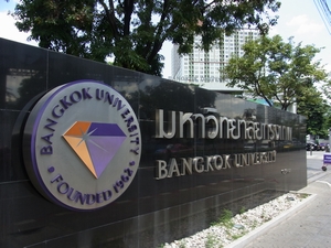 廃線通りとクルアイナムタイ通りの交差点左角のバンコク大学でちょっと一服するとしましょう ^^バンコク大学は、1984年設立。私立の中でのレベルは、アサンプション大学に次ぐ2番手でしょうかね。キャンパス内に足を踏み入れ、学食を探します。賑やかな一角を探せば大抵、そう。歩いているうちに先に見えるビル1階から喧騒が聞こえてきました。間違いない。ここだ。今まで訪れたことのあるどの大学の学食とも雰囲気が全然違うぞ!自由 オシャレ 大人っぽいそんなイメージが瞬時に頭に浮かびました。男性は顎ヒゲ生やしたチョイ悪系率高し。女性はロングの明るい茶髪率高し。そして細い!そうか。今まで国立大学の学食しか行ったことがなかったもんな。私立になると、こうも校風が違うのか。自由でいいけど、保護者はお金がかかりそう ^_^;)学生だけでなく、ブースも洗練されていて、まるでどこかのショッピングセンター内のフードコートみたい。英語まで併記されてるじゃないですか。そう言えば、欧米人学生の姿もよく見かけます。インターナショナルのコースがあるからなんでしょうね。バンコク大学は、ここクルアイナムタイ・キャンパスの他に、バンコク北方パトゥムタニー県内にランシット・キャンパスもあります。学部によってキャンパスが異なったり、1,2年次はランシット、3,4年次はクルアイナムタイという学部もあったりで、ちょっと複雑そう。インターナショナル課程は、各専攻とも4年間ここみたいですね。さて私はというと、チャーイェン(アイスミルクティー)を購入。20バーツ也。学食にしては高め。さすが私立。一服できたので、バンコク大学を後にして歩き始めます。時刻は、11:43。相変わらずトラックが列をなして行き来していますね~。あちらへ向かい、高速下の橋から右手を眺めると、ここも広い意味ではクロントイ・スラムでしょうね。位置的には先ほど歩いた廃線通りの裏手になります。この先、クロントイ港ゲート前の交差点を右折。運河に沿って西へ歩き、渋滞中の道路を渡ることに。大きな車ばかりでちょっと怖いけど、渋滞でまったく動かないので大丈夫でしょう ^_^;)さらに西へ歩きます。さっきからちっとも動かないんですけど、ここを抜けるのに何時間かかることやら。お疲れ様です…。ちなみに左手の道路沿いには、木材屋が数百メートルに渡って連なっているのです。中には木材だけでなく、家具を組み立てて販売している店も。でも、クオリティーはかなり低め。この木材屋街の裏手に回るとですね。そこには、線路があるのです。…ってこの辺りのことは、2009年12月に訪れた際にも書きましたね ^_^;)その時頂いた近隣にお住まいだった方のコメントによると、夜間のみ貨物列車が走っているのだとか。なので安心して線路上にも木材を広げてトンカンやっている店もあったりします。<旅費交通費>歩いただけなので:0バーツここまでの合計:14.5バーツ※旅は2014年9月19日(金)に行いました。つづく※当ブログから1日旅の記事だけを抜粋し見やすくまとめたブログ『タイ~バンコク周辺バス日帰り旅~』 もぜひご覧ください。そちらのブログは左側の「旅ごとに見る」欄で旅名を選ぶと順を追ってお読みいただけます。旅の参考になれば幸いです。★★★お薦めのタイ語学習書です★★★ ◇ 初 級 ◇ 『あなただけのタイ語家庭教師』国際語学社 ◇ 中 級 ◇ 『中級タイ語総合読本』白水社 ◇ 上 級 ◇ 『タイ語上級講座読解と作文』めこん
