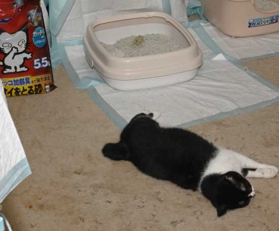 まあ、単純に寝ているだけですが、いくらエアコンを24時間稼働させて、湿度、温度を快適に保っていても、やはり夏場は、猫トイレの掃除の回数を増やさないと、