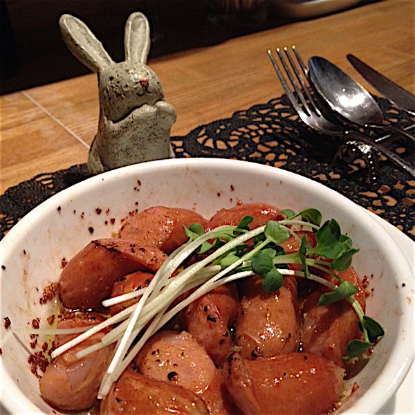 本日登場の新メニュー ソーセージのアヒージョ! 夏の暑い日はコレでビールをキュ〜ッ!と!! みなさんのお越しをお待ちしております。