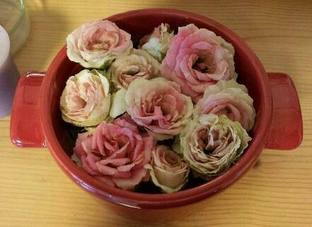 唐突な質問ですが、皆さんは「いただきます」のときに両手を合わせますか?最近はテレビドラマやグルメレポートでよく見かけますが、私と周囲の人たちの中ではめったに見られない作法です。ここ数年、なんとなく心に引っかかっていたのです。(これはどこの風習なんだろうそれとも宗教的な作法なんだろうか)ふと思い立って、ネットで検索してみました。実践派と非実践派半々ぐらいでしょうか。実践派のコメントには厳しいものも見られました。「手を合わせないのは礼儀知らず」。少~し、ムッとしたりして。父は畳のへりも踏んではいけないと言うぐらいうるさい人でしたが、このような作法は教えられませんでした。コメントを見る限り、西方面の方に実践派が多いようです。島根出身の同僚も「あたりまえだと思っていた」そうです。そもそも「いただきます」にあたる言葉がない国が多いわけで、私は、背筋を伸ばして「いただきます」でいいかな。「バレンタインデーのチョコ」や「恵方巻き」は、どこかの誰かが儲かる仕組みがありますが、「いただきます」の合掌で儲かる人はいないでしょうね。どなたか本当のところをご存知の方、教えてください。台風の来る前に、庭の薔薇たちの姿を撮りました。○茶々○ハニーディジョン○チャールストン○マダムローズ(名無し)