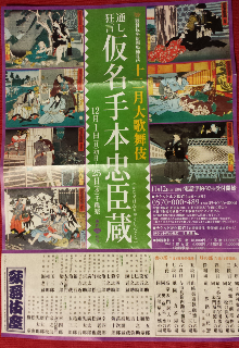 新しい歌舞伎座の柿葺落とし公演、十二月大歌舞伎に行って来ました。『仮名手本忠臣蔵』大序、三段目、四段目と浄瑠璃「道行旅路の花聟」です。20年ぶり位の歌舞伎です。学生時代から舞台全般が好きでいろいろ見てきましたが、伝統芸能では断然能楽ファンでした。大学の授業で学んだ歌舞伎発祥からのイメージと、現代の歌舞伎鑑賞がなんとなくしっくり合わさらなくて…。でも、表現が庶民的で、華やかで、客席と舞台の空気の流れがよくて。歌舞伎も相当魅力的です。阿国歌舞伎に始まり遊女歌舞伎、若衆歌舞伎、そして元禄歌舞伎から今の歌舞伎へ。スターやアイドルがいるところも親しみやすいはず。今回でいうと松本幸四郎、市川染五郎、尾上菊之助、中村七之助私がいちばん楽しみにしていたのが、浄瑠璃「道行旅路の花聟」のおかる:坂東玉三郎と勘平:市川海老蔵コンビです。どうですか、キラ星のスターとアイドルたちです。以前は一幕限りの安いチケットがありましたが、今はどうなんでしょう。若くてお金のない学生が見られるような工夫、ほしいです。お昼のお弁当。30分の幕間にいただくのは忙し過ぎました。こちらはきたないちぎり方ですが、歌舞伎座柿葺落記念、限定の鯛焼です。中に求肥(ぎゅうひ)が入っていました。実は今回の歌舞伎鑑賞は社員旅行でした。よかった~、玉さまと海老さまが見られて。バスの中から見た銀座三越のかわいいディスプレイ。