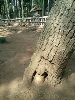 3月11日です。思いはあっても言葉が見つかりません。昨日出会った命の形をご紹介します。わかりにくいですね。目線を上に上げます。さらに上に。中が空洞になった木の中で、竹が育っています。木も生きています。国指定重要文化財(柏市)旧吉田邸の裏庭です。吉田家は帯刀を許された名主で、現在の当主の夫人はテニスの(旧姓)沢松和子さんです。左の洋館がご当主のお住まいで、テニスコートを挟んで右手に先代の住居だった吉田邸があります。前庭の梅です。共生の木は、ボランティアの楽しいオジ様に2時間近く案内していただいて、最後に「時間があれば…」と案内していただいた裏庭にひっそり立っていました。