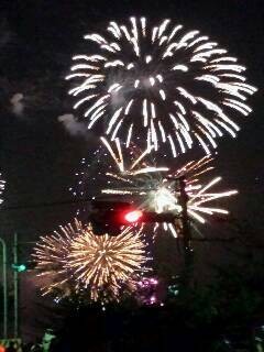 我孫子市と柏市に囲まれた手賀沼の花火大会が、震災後初めて開催されました。全国的には知られていませんが、我孫子市も被災地だったので、復興イベントと言えるかもしれません。長男の小中学校時代のママ友が、花火を見ながらビールを飲むというイベントも再開しました。第1子、第2子ともに同級生のメンバーも多く、子どもたちは皆20代後半にさしかかりました。この3年に結婚したり、子どもが生まれたり、話題は子どもたちのその後と親の介護など。そうそう定年退職したご亭主の話も…。妻たちはパートながら仕事現役なので、言いたいこともいろいろ。思い出話も愚痴も自慢も、花火とともに打ち上げてきました。おつまみと自分の飲み物は各自持参です。この日の昼間は近所のガーデニング屋さん「Innocent Garden]のイベント。手作り工芸品、飲食、アンティークグッズなどの小さなお店がたくさん出店していましたが、Innocent Gardenの苗やグッズが30%引き、会員はさらに10%引きというのがいちばん魅力的でした。普段上がれないルーフガーデンから会場を見渡してみました。 日中は汗が流れる暑さでしたが、夜の花火大会は涼しくて快適でした。