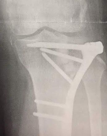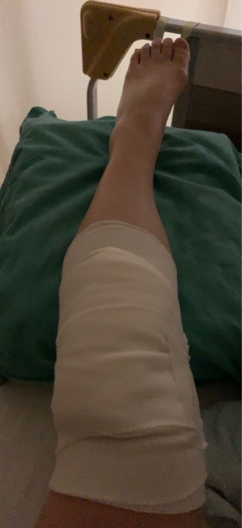 抜釘手術無事完了しました。 膝はまたつっぱって曲がり悪い。 手術して翌日にはなんとか歩行できたのですぐ退院してきました。 またリハビリの日々始まります。