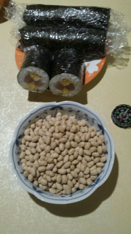 昨日は節分ということで毎年恒例の恵方巻きそして豆まき!\(^o^)/♪ 恵方巻きは子供たちが大好きなマグロとタマゴを手巻きにしたシンプルなもの。でもかなり太いので恵方の南南東を向いて食べるのは子供たちには大変そうに見えましたね。もちろん美味しかったです!(^-^)/ その後、家のあちこちで 「ふくはぁ~うちぃ~!」 「おにはぁ~そとぉ~!」 と大声だして豆をまきまして。 やはりこうした年中行事は子供も大人も好きですよね~!子供のいる家庭には欠かせないイベントですね!(^O^)