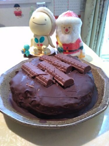 【初めてのケーキ作り】 クリスマス前後に初めてケーキ作りにチャレンジ! 以前、日曜日昼間に日テレ系で放送されている「ニノさん!」という番組内で、「レアメシ」という企画の回がありまして、その中でイギリス女王が自ら作るチョコレートケーキがレシピとともに紹介されてまして、これでしたら料理初心者でも作れそうでしたのでちょっと作ってみました(^o^) 生地に小麦粉などではなくてビスケットを使うのがポイントで、これでしたら混ぜるだけなので私でも簡単に作れました(^o^)/ 完成品はコーティングのチョコレートが分厚くなったため表面がかなり硬くなり、味もかなり甘めでしたが(レシピが甘めの設定なので甘さを控えるならもう少しグラニュー糖減らしてもいいかも)、初めて作った割にはまずまずの出来でしたね! 今後、いろいろお菓子や料理作りチャレンジしてみたいですね(^o^)