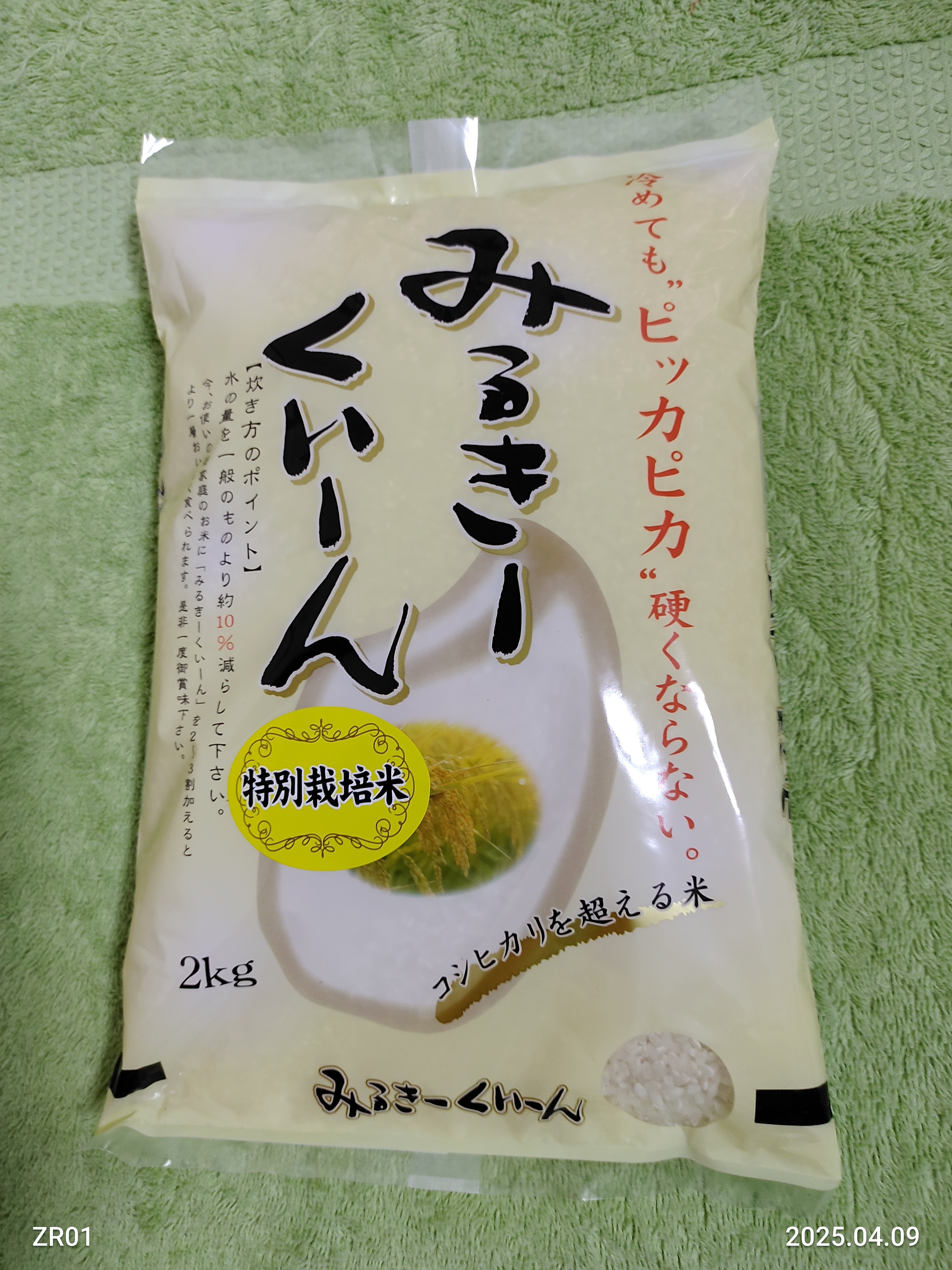 お米が値上がりする前は、地元のドラッグストアで決まったブレンド米、もしくはコシヒカリ、アキタコマチなどを購入していました。高騰した昨今、地元ドラッグストアだけでなく、ちょっと離れたディスカウントストアやネットなどでも購入するようになり、それにつれて購入する品種も初めて西日本のものや、聞き慣れないものを購入するようになりました。その中で、私のバカ舌でも「これは美味しい」と味の違いがわかる品種がひとつ。「みるきーくいーん」(特別栽培米)です。とにかく美味しい😋もち米のようにふっくらもちもちの炊きあがり。冷めても柔らかくてまだまだ美味しい✨つい、リピート買いしてしまいました💦こんな機会だからこそ、美味しいお米に出会うのも悪くないですよね😊
