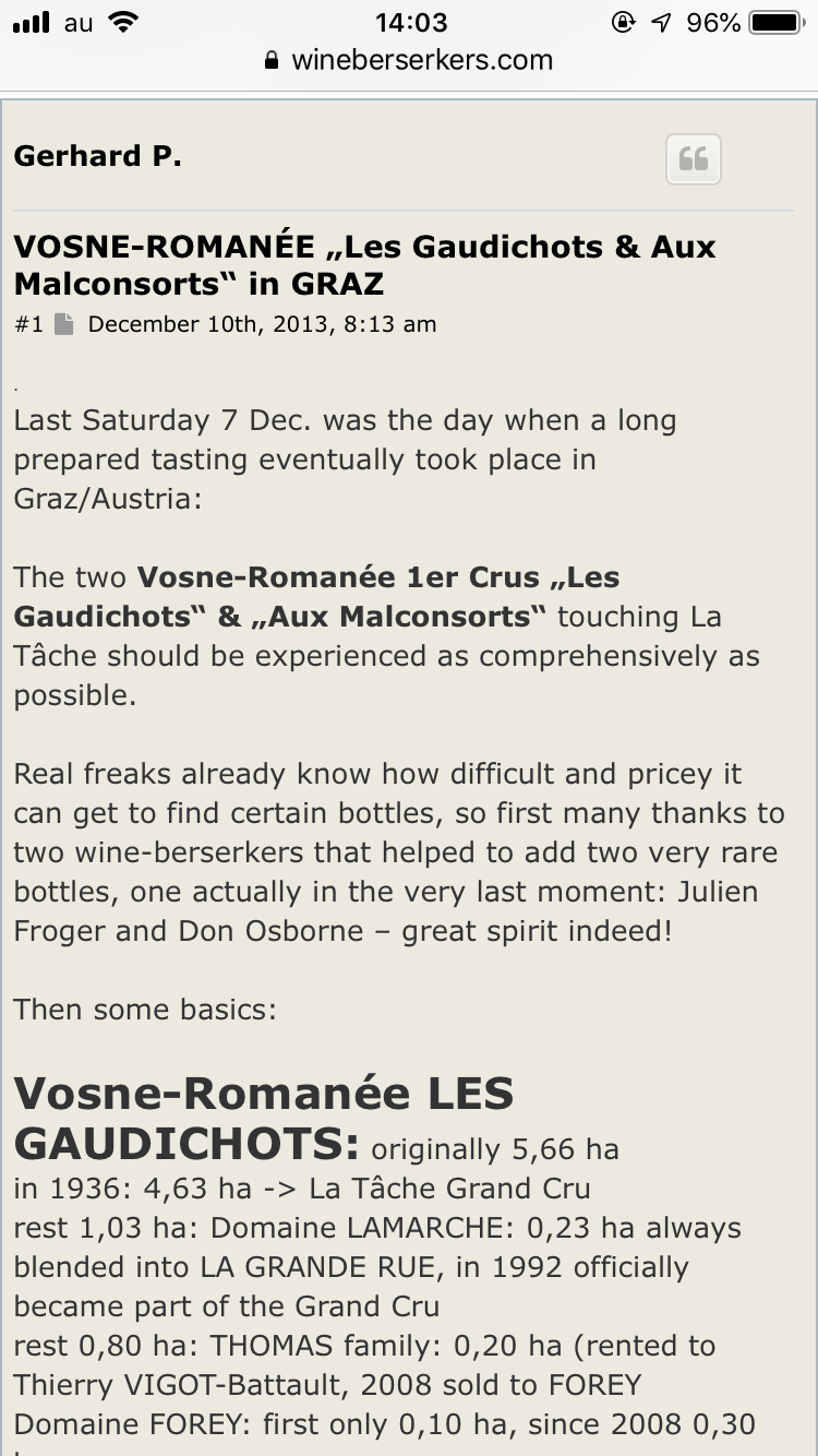 余計なお金を使わないという意味では、ゴーディショがラ・ターシュに隣接する畑であるという知識そのものが邪魔な気がする。ヴォーヌ・ロマネには、マルコンソールなど他にも良い1級畑があるので、レベルの高い作り手のワインを適正な価格で買って飲めば良い気がする。