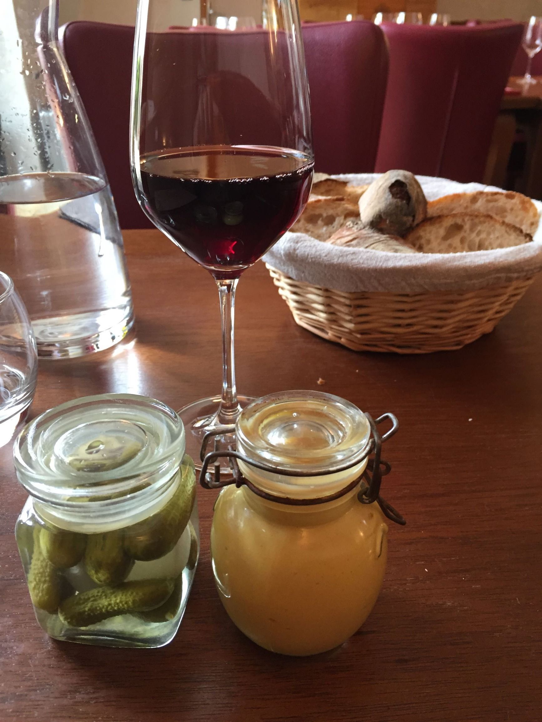 ワインはグラス売りが充実しており、1杯目がコント・ラフォンのモンテリー白、2杯目がミクルスキーのレジオナル赤。1杯目のラフォンのモンテリーが絶品で、昔国内で飲んだ同銘柄よりも随分と美味しく感じた。ミクルスキーは普通のレジオナル。グラス売りのリストには知らない作り手のジュブレ・シャンベルタンの赤があり、多少高くても、こういうお店が勧めるワインを試すべきだった。料金は全部で49ユーロ。ボトル売りのワインリストも実に内容が充実していたので、次に来ることがあれば、1本まるごと飲みに来たい。