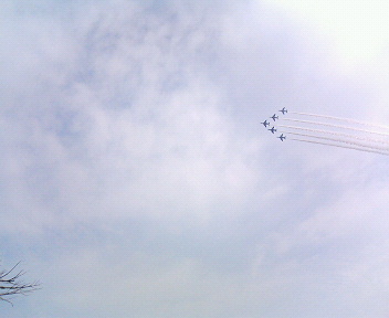 今年で、瀬戸大橋開通20周年。 初めて自分が四国に足を踏み入れたのは、1989年(開通の翌年)、中学の先輩と鉄道写真を撮りに来たのが最初だったな。 なんてことを思ってみたりする訳ですが。その時は四国に定住することになるとは予想してませんでしたので、不思議なものです。 瀬戸大橋があったからこそ、四国に来たひとりかもしれません。 さて、話が逸れました。 今日は、瀬戸大橋開通20周年記念イベントが各所で行われました。 そんな中で、ブルーインパルスの飛行があるということで見にいきました。 こんな感じで、(↓)ガーンと飛んできて (ひゃー~、ブツカル~~~~!!!)というほどの近距離で変体を組み、大空を舞っていきました。〔最初の写真は、少し見づらいですが、大空にオリンピックの五輪マークを描いている最中のものです。〕 初めて見ましたが、すごい!!!の一言でしたね^^ブルーインパルス★楽天市場のブルーインパルス商品をご紹介!!★