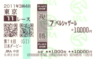 昨日、2つ買って2つとも外したのはイタイ・・今日も2つ。ダービーと、新潟メイン・・ダービーは、ベルシャザールの複勝1点!ルミエールSは、セブンシークィーンの単勝1点!WIN5・トウショウフリーク、ディアビリーヴ・リリエンタール・セブンシークィーン・アスターエンペラー、マルカベスト・ベルシャザール2×1×1×2×1=4点