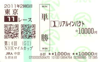 今日は馬券買ってきた。結局(?)予定通り・・NHKマイルカップは、リアルインパクトの単勝新潟大賞典は、シャドウゲイトの複勝
