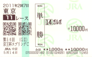 今日は、京王杯スプリングカップのみ購入。私の本命はシルポート・・では無い。サンカルロやジョーカプチーノでも無ければ、エーシンフォワードでも無い。ガルボだ!しかも(?)単勝!何の理由も無いけど、なぜか強気・・
