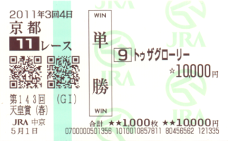 馬券買ってきた。天皇賞と谷川岳Sの2つ。天皇賞は、トゥザグローリーの単勝。2倍を切ってもおかしくないと思っていたが、3倍位つきそうなので迷わず単勝・・谷川岳Sは、リディルの単勝。危険な人気馬かも知れないけど・・