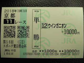 京都金杯は、ウインガニオンの単勝5番人気13着(ハズレ)WIN5 1×1×1×4×1=4点 ハズレ