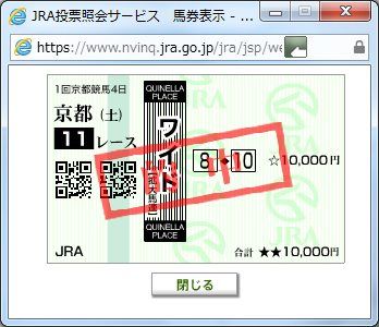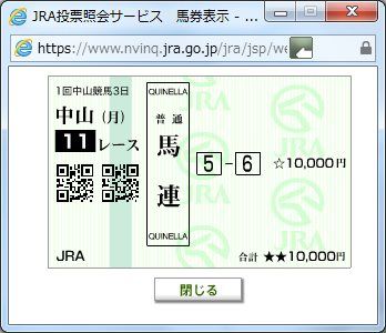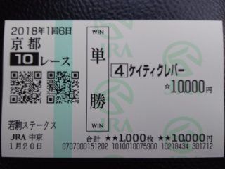 若駒Sは、ケイティクレバーの単勝3番人気1着(的中 450円×100)私にしては珍しく、土曜だけど今日は休みで馬券を買ってきた。