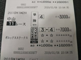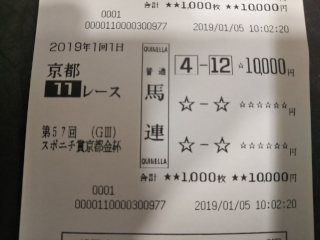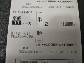 京都金杯は、パクスアメリカーナとグァンチャーレの馬連1点パクスアメリカーナ 1番人気1着グァンチャーレ 4番人気6着(ハズレ)今年初日、とりあえず1個当たって良かった・・
