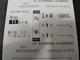 AJCCは、ジェネラーレウーノからフィエールマンへの馬単1点ジェネラーレウーノ 2番人気4着フィエールマン 1番人気2着(ハズレ)