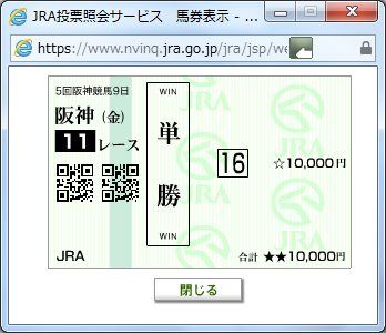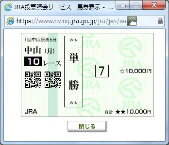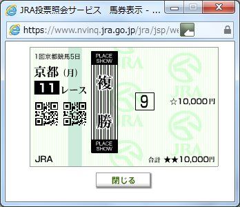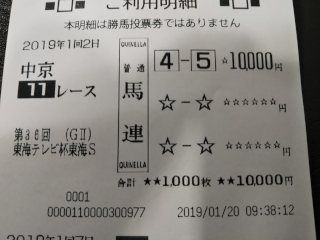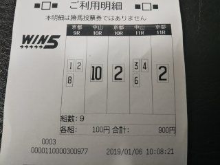 3×1×1×3×1=9点的中(1,222,820円+返還300円)久しぶりにWIN5を購入した。ウマカで初めて買った。レース後、何度も明細を見直したが、間違いないはず!