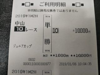 ジュニアカップは、ヴァッシュモンの単勝3番人気1着(的中 560円×100)