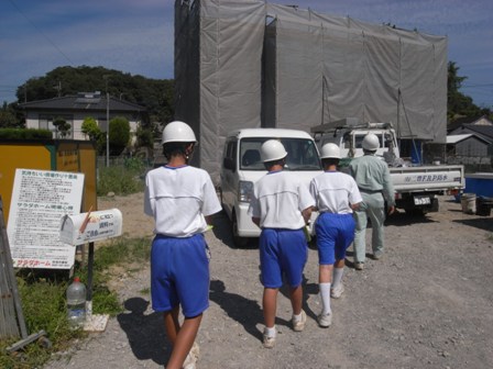 今日、戸次中学校の男子学生3名が職場見学にやってきました。朝から朝礼を共に参加していただき、その後清掃及び現場パトロールに同行していただきました。工務課の諌山が説明をし、3人ともとても熱心に話しを聞き、自分が疑問に思ったことを積極的に発言もしていました。自分が中学生の時代にはこんな体験はありませんでした。(台湾では。。。会社のみんなにも聞いたところ無かったそうです。)今日の体験で将来の役に立てれたらいいと思います。河野くん、加藤くん、藤澤くん、お疲れ様でした。