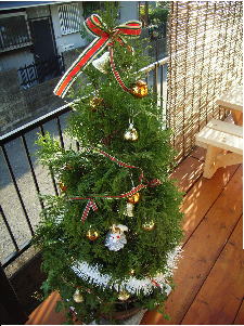 今年こそは庭にクリスマス飾りをっ!!!という事で、クリスマスツリーとリースを作って飾ってみました。・・・。まあ、初めての事だったから…。う~ん。仕方ないか~。これがそのツリーとリースなんですけど。 なんだかどうも、野暮ったくていまいちなんだよな~。まあ見る人がほとんどいないから、手を抜いたのもあるんだけど…。そんなのは言い訳です。来年はもっと素敵なクリスマス飾りを飾れるようにがんばります。