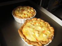 私のHPを担当している友達が久しぶりに上京してきたので、打ち合わせ兼ランチをうちの工房でしました。メニューはキッシュプレートです。オーブンから出たばかりの、出来立て熱々キッシュ。前はこんな手間のかかる料理はめんどくさくて作ることはなかったのに、お菓子屋さんを始めて環境や材料が整っていると何でも作りたくなっちゃう!何でだろう?この日はとってもいいお天気で暖かかったから外にあるウッドデッキでランチをしました。こうやってみるとちょっとしたカフェ気分!とてもいい気分でランチを食べる事が出来ました。ここで、簡単キッシュレシピ!本格的に作ると結構面倒くさいキッシュ、でもちょっと工夫をすれば簡単キッシュが楽しめます。1.まず、耐熱容器にバターを塗っておきます(これをしないと後で洗うのが大変!)2.そして、お好みの具材をその中にいれます。(この日はスモークサーモン、クリームチーズ、ほうれん草、玉ねぎ、シメジでした。他にはジャガイモにベーコンなんかも定番ですよね)具材は火の通りにくいもの、水が出るものなどはあらかじめ茹でるか炒めるかして軽く味をつけておきましょう。3.キッシュの液を作ります。(卵2個、生クリーム120cc、牛乳75cc、塩、こしょうをボールに入れて混ぜ合わせます。)4.具の入った容器に液を入れて上からとろけるチーズをかけて180℃のオーブンで30~40分焼きます。まわりのパイ生地を省略したけど、結構おいしいですよ。パイ生地がない分、パンやご飯のおかずでもよく合います。一度試してみる価値ありですよ。