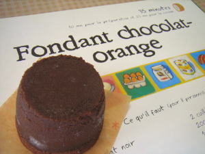 久しぶりに「リサとガスパールのレシピブック」のお菓子を挑戦しました!と言っても、実はバレンタイン用の商品に何かないかな~と思って物色したので、作ったのはずいぶん前のことなのですが…。バレンタインの忙しさも昨日で終わったので、今日は写真なんぞ撮ってみました。 作ったのは「フォンダンショコラ」。レシピブックではオレンジピールが入っているのですが、ちょっとアレンジしてラム酒風味で食べキリサイズで作ってみました。難しそうなお菓子に感じるけど、これが意外とシンプルな作り方だったんです。なので、いつも苦労する翻訳作業も辞書を2回くらい引いただけで、バッチリ解読!シンプルな作り方なんですけど焼き方が非常に難しくて、実は何度も失敗しました。やっぱりシンプルなお菓子って難しい!!!このフォンダンショコラはとっても気に入ったので、今後もっと上手に焼けるように研究を重ねます!レンジで温めると中がこんなにトロ~っとします。。。