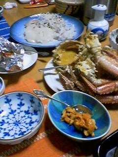 昨日北海道へ旅行へ行っていた両親が帰ってきました。おいしいおみやげをた~んと携えて。。。イカの刺身、イカの肝焼き、茹で毛がに、塩漬けうに・・・こんなにたくさん魚介のご馳走が食卓に並ぶのは久しぶりです!あまりに興奮して、普段は滅多に飲まない日本酒を熱燗でいただいちゃいました。あー、おいしかった。