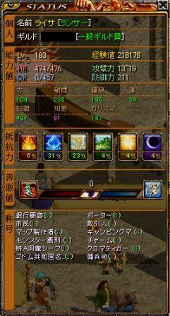 こんばんわ^^日記なんて三日坊主の私がここまでかけるとは…w感動しておりまふb夏休みの宿題とかでためてあとで焦ってやるタイプでとにかく長続きしませんwwwでもこうして書けてるってことはやっぱりとおりすがりでも目を通してくださる皆さんがいるからだと思うと、なんだか書くのが楽しくなってきました^^さて今日はメインランサについてですが。。。今lv183知識ランサです。ステは↓の通り。まあ、知識乙なのですよ。。。wこれでも+79頭につけています。首はスキル+2の骨首。耳は知識+16の骨耳です。鎧はハフプレ効率手はSF足は防御効率です。腰は運固定さてここで気づくことはHP効率は?ということbそうです。らいはHPもCPもつけずに狩りをしていますwHPは何もしてませんがとりま450ありますしCPも450はあります。最近サイドマスしたので被弾が断然少なくなり、最小限に削る。。。っていうか削りに削って効率物はつけない、という決断をしました。まだ大丈夫な狩場だし、いずれは時と場合を選んでつけていこうと思っています。まあ知識ランサで骨耳!?と思われる方もいるでしょうけど…。らいは基本、ボア・クランとSFで狩ってます。するとどうしてもFI威力が減りますよね。その分、運固定つけて、クラッシュだせば、敵のHPは1/3減るわけです。これは自分流に考えて、狩りやすいなぁって思った装備なので異論オブジェクションあると思いますが…。白ダメ乙なのに赤ダメで3000とか4000出るとチョー気持ちいい!!!www↑ただそれだけのためかも。。。。wwwGV装備では首の73%(だったけ)HP効率あるのはあるんですがいずれは首飾りLXHP効率ものを…と思っています。頭・耳ともできれば80%に近いもの。スキルとしては、サイドマスを終え、次何したらいい?と思っている中。。。マジを覚えて、GPに走ろうかとも考えております。。。w単に雨アチャならもう1キャラいるしねぇ。。。BPマスはゆっくりやっていこうと思っています。らいにしかできないことをさせてみたいんですよね^^さて。。。眠い目が覚めませんよう。。。。おやすみなさいノ