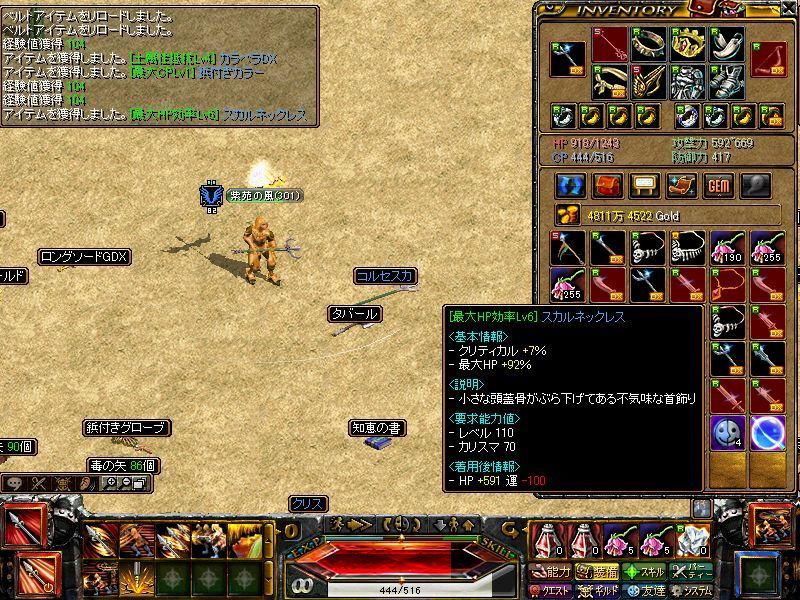 こんにちは^^ひさびさに更新…wなんかだんだんと秋っぽくなってきましたねえ。らいちゃは季節の変わり目ということもあるのでしょうか。眠れない日が続いてます。まいいさwで眠れないからRSでは紫苑→深夜デスナor深夜ドロップ狙い狩りw エル→ただいまちょっとお休み中 らい→深夜狩りをやっておりますwwwで紫苑がやっと300歳^^v(あ、移籍先はζPhoenixζさんです^^v)メインクエ3とデスナ、塔秘密行くとサクサク上がりますねえ^^運も装備補正いれて423b微運らしくなってきましたね~^^てなことで最近のドロップ集ふふふ…ラストのタートは今日出ました^^vわーい♪モリ外周でさ、狩りきれてないのに狩場主張する方いるなか、「狩場独占ですか?」って反論しつつがんばって狩ってたらw最大のご褒美いただきましたでつ^^;まあね、狩り場主張、わからないでもないんだよだってたくさん狩りたいもん。紫苑だって即死狩りだから通路一列ラクに狩れるんだよ。でもね、あくまでみんなが集まるところ。過疎ってるならいいと思う。通路一列使ったってね。狩りきれてないのなら狩りきれる分だけ狩ればいい。じゃないと他の人が狩りできなくなっちゃわないかい?余ってるものを「使ってます」そりゃ~ 混む時間帯に言われたら「なに、この人」ってなるだろ…。画面の向こうには人間がいる。プレステやWiiとは違うんだ。リアルタイムで言葉が伝わって、リアルタイムで感情が動く。最近、それ忘れてるプレーヤー、多くね?って愚痴ですた。
