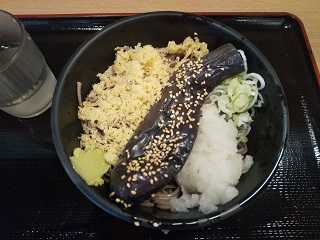 『冷やし茄子おろしそば』\470    ※ 揚げ茄子ではなくて茄子の天ぷら