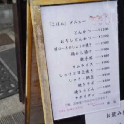 あとはクチコミ等の情報は見当たらない。  店頭のお品書き。