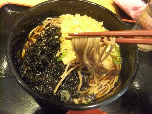 POPには「新メニュー」とあるけど、14年1月に銀座店で食べているから復活メニューなのかしら? 海苔と揚げ玉がざっくり。安定した美味しさのそばとつゆとともにずるずる~っとたいらげた。