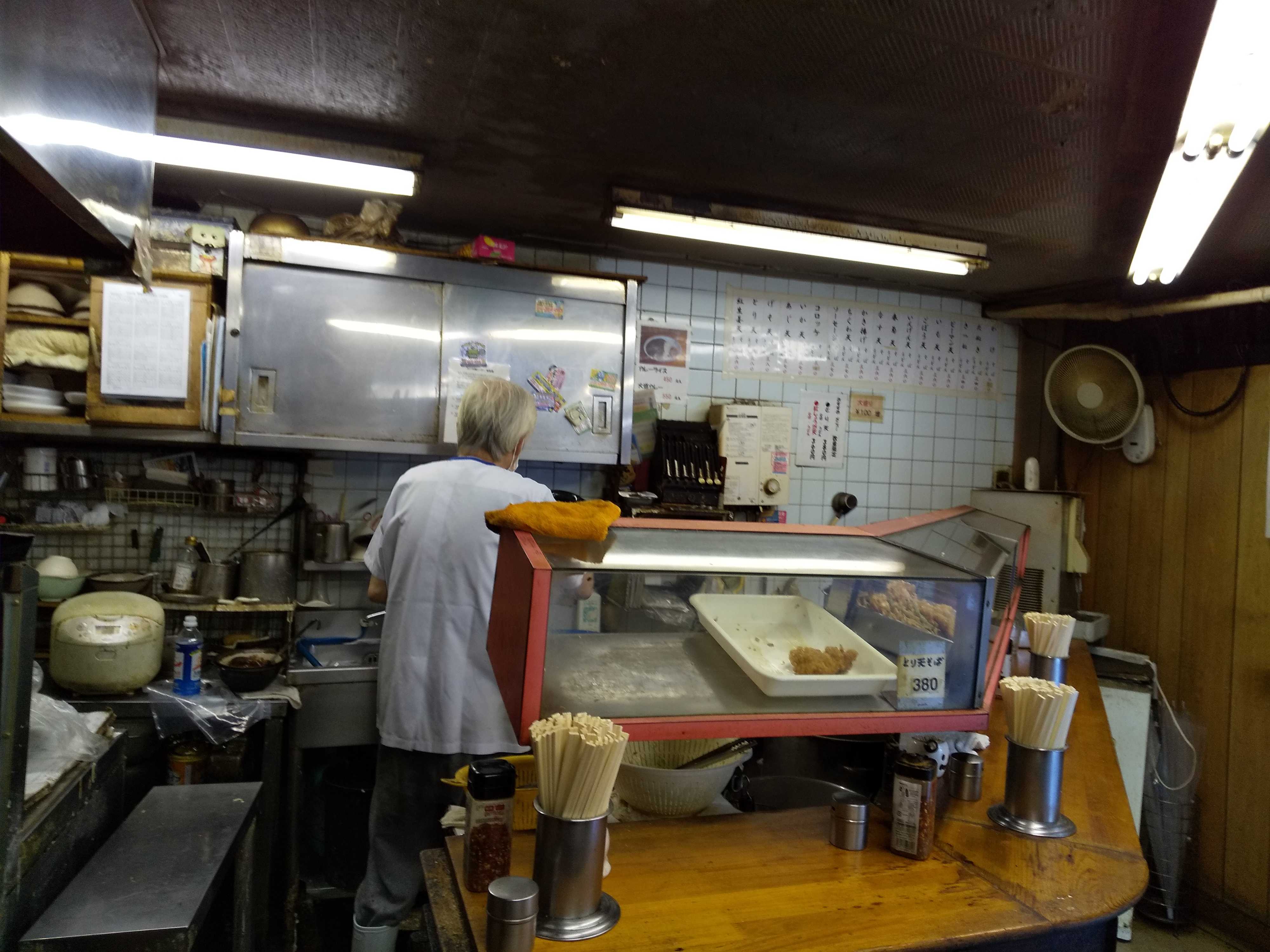何より店主の、店主たるや風格が最高なのだ。「グンゼのジジシャツを着たサンタクロース」を想像していただけたら、ほとんど間違いはない。性格もサンタさんで、クリスマスソングではなく、演歌をしっかりとした声量でハミングしながら、揚げ物をこなす。 六文そば初入店のときは、演歌の合間に、「これから仕事かいってらっしゃい!」とか「そば食べたら健康になれる!」などたくさん話しかけてくれた。”