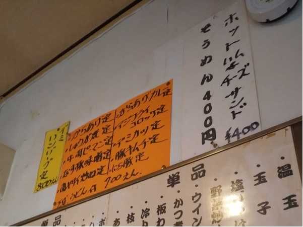豊富な酒肴メニューの上に定食メニューあり。外で見なかったのは『デミハンバーグ定』かな。