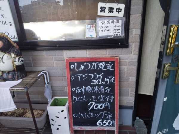 冷凍麺を使用しながら、『かけ』『もり』が当初¥200と安めの値段設定だが昼飲み需要でカバーしているようだ。現在は¥350になっているが主流は定食\700くらい。揚げ物は揚げたて提供。