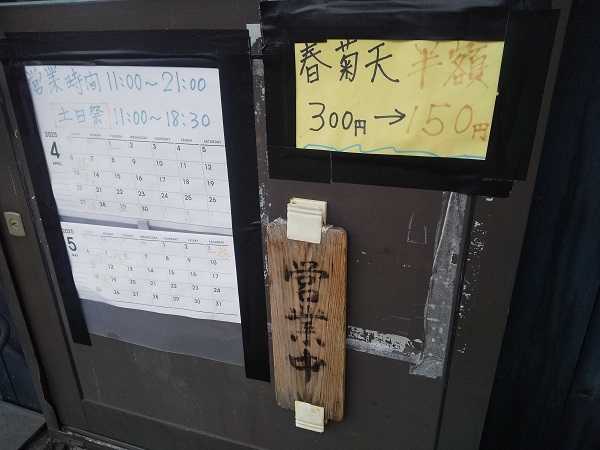 おっと、好物の春菊天が半額なんだって!ありがたい。決めた