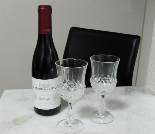 先日、お茶とお菓子をご馳走した友人が、ワインを持って来てくれました。 上等のワインではありませんが、フランスのワインです。早速、普段は使わない、こちらもフランス製のワイングラスを出してきました。 Moreau&Filsとラベルに。 グラスのカットが光にあたるとダイヤモンドみたいに輝きます。 う~ん、写真ではあまり輝きませんねぇ・・・ ところが、友人はこのグラスでは飲みたくないというのです。安物のワインなので高級グラスではいやだと。 部屋を見回し、『 あ、これこれ 』と言ってわが家の飾り棚に並べてあるグラスを持ってきました。 スヌーピーちゃんのゴブレットです。 この絵と色が気に入ったそうです。 それぞれ好みはあるものなんですねぇ。 お互いに気に入ったグラスで乾杯! 赤ワインが認知症の予防、改善に効果があるということも意識して持ってきてくれたそうです。 何はともあれ、今夜はワインをいただきました。