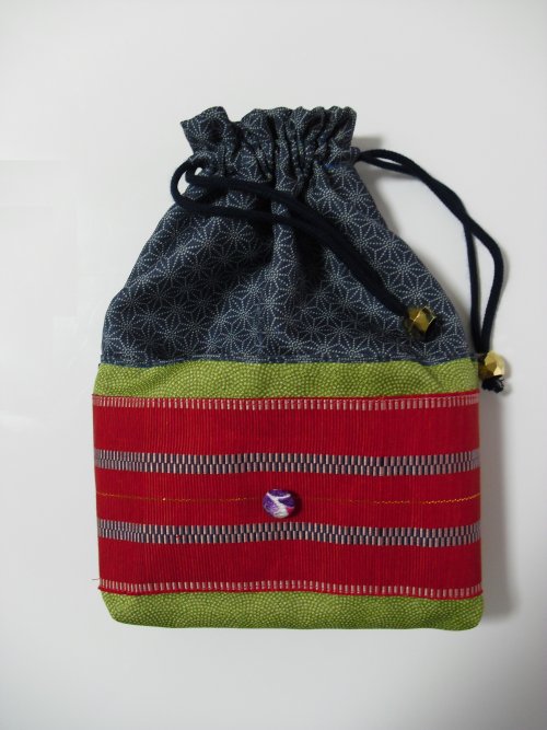 先日茶の湯菓子をいただいた方から、私が小物作りが好きだと聞いたということで何かに作ってくださいと、ハンカチと風呂敷をいただきました。 私が立ち上げているボランティアグループに寄付してくれるとのことでしたので巾着とポーチに変身させることにしました。 実物はもっと色が鮮やかなのですが・・・裏表を活かしてどちらの模様もでるように工夫し、赤いところは着物の伊達締め(和装小物)を縫い付け、帯のように見せてみました。真ん中に錦糸が織られており、ちょうど帯締めのように見えるのですが、写真ではちょっと分かりにくいようですね。 ハンカチを丸く切って作りました。 ところが、ところが、その方が展示コーナーに早速見に来たと思ったら、自分が出した生地だから、私が買いたいと言い出して、二つともお買い上げです。手間はこちらで掛け、変身させたのですが、その方からのいただきものなので、お代は結構ですと言うと「とんでもない!」と、寄付も込めてと言いながら、お買い上げいただきました。 なんでも、自分の持っていたものを誰か他の人が使うと思うといやだとか・・・人の気持ちは複雑ですね。 わがボランティアは資金がないので、皆で手作り品を施設のコーナーに展示し、販売しています。 着物で作ったトートバッグとポーチ 私は主に着物の生地でバッグを作っているのですが、結構好評で、出すとすぐ売れてしまいます。嬉しい限りです。