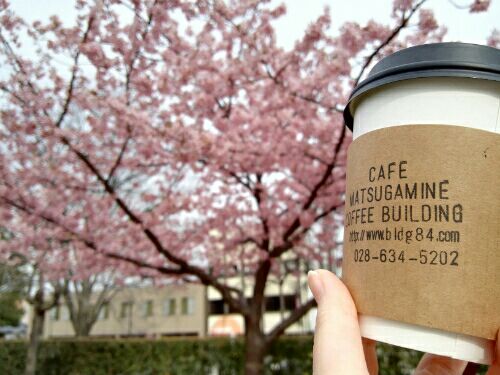 市役所駐車場にとめて、わんこのさんぽ 宇都宮城址公園です h28.3.16 のさきぐあい わんこひきつれ徒歩5分、マツガミネコーヒービルジングでコーヒーをテイクアウト 花見コーヒーです まんかいです
