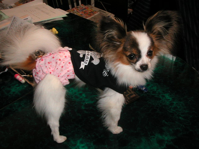 昨日で10ヶ月になりました~ラヴィン、1日遅れちゃってごめんね~最近ラヴィンにチャームポイント?ができたんです!耳毛にメッシュが入ってるんですよ~わかりますか?両耳に同じよーに入ってるの♪オシャレでしょv(・∀・*)あ、あたしが白くしたわけじゃないんですよ(笑シッポの毛もいちだんとフワフワになってきてやっとパピヨンらしくなってきたかなぁ~っておもいますそして、先日病院へ体重を測りに行ってきました~~~!!!なんと 1.5キロに増えてたんですヾ(@^▽^@)ノ ワーイいよいよ避妊手術しま~す!まだ予約してないんだけど、5月の末に予約する予定です。