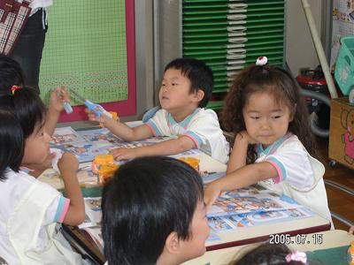 今日は「保育参観」の日です。幼稚園のバスに乗って、息子が通っている幼稚園へ教室へ入ると、「切り絵のお仕事」をおこなうところでしたノートの端を切り取り、のりで貼り付けるというお仕事(?)です糊付けが終わると、息子がソワソワ何でソワソワしているんだろう???と思っていると先生にノートを持っていき、スタンプを押してもらってますそっか、スタンプを押してもらうからなんだ~と思っていると息子がはさみなど、使ったものを片付けてはじめました家では、片付けはしないな~と思いつつも、幼稚園でがんばっている息子を頼もしく、かっこよく見えました(親ばか)その後、園庭で遊ぶということなので、移動ピカリンたち、年中さんは鉄棒を使うことに前周りを、ママたちの前で披露してくれました^^vピカリンの鉄棒を1回見て、ラブリンは?と思い探すと・・・ジャングルジムに登って、知らないお母さんが面倒を見てくれてましたーー;;ラブリンを連れ戻すと、なんと逆上がりを練習しているではないですか!!あうっ、しっ、しまった~と、ものすごく後悔しながらも、息子の順番はすでに終了――;;なにやってるんだか~と自分に問いかける私その後は、自由時間になりピカリンはお友達と遊んでました息子の遊んでいる様子を見ていると、担任の先生が近づいてきました挨拶をすませると「ピカリンは、いつも1番なんですよ」と、ニコニコしながら先生が教えてくれましたなにが1番なんだろう?息子は積み木が好きだから、積み木教室でのことだろうか?と思っていると、「外で遊んで教室に戻るときも、ノートを見せるときも、1番なんですよ」と秘密を打ち明けるかのような感じで、教えてくれました意外な息子の一面に、ビックリ息子は、幼稚園での出来事はあまり話さない聞いても、「忘れた」とか「わかんない」とかばっかりだからママの知らない、息子の一面が、この幼稚園には存在するんだと改めて思った、先生の言葉でしたその後、12時になり、給食の時間に息子は、この日、お当番黒板の前に立ち、お友達に「(給食にして)もーいいかい?」と聞きお弁当を配るのですラッキーと思い、眺めていると、「バスの出発の時間です」との声が給食の内容も確認できないまま、教室を出ることにここまで見たんだから、お弁当を配るところも見たい・・・と思うものの仕方がない。時間だ。後ろ髪引かれる思いもあるけれどなんだか、大きな収穫を得た気持ちのある保育参観の日でした***********************************大好きなフルーツの特集です 予約販売になりますが、岡山の白桃です。私、桃が大好きなんです~う。もちろん、今、家に桃が(箱で)ありますよ♪ニューピオーネ2房ですマスカットとピオーネのセットです食べ比べができますね♪フルーツの詰め合わせです毎日何を食べようか迷いますねハウスみかん、家庭用4.8キロです。昔、子供の頃、箱ごとおいてありました共同購入です。小さいですが、とっても甘いみかんです。早い者勝ちですよ