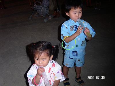 夕方から、目の前の小学校のグランドで盆踊り大会がありました。地元の自治会が主催しているので、屋台はあってないようなもの^^;;とはいえ、ここ連日踊りの練習でずっとマツケンサンバが流れてました(笑)早めにお風呂にはいり、夕飯を食べて7時過ぎ旦那さんはいかないとのことで、親子三人で行くことに目の前なので、歩いて移動盆踊り大会といっても、子供は踊りなんて関係ないのでまずは、チューペットを買い、それぞれにちなみに1本20円なりう~ん。やす~いその後、くじ引きを2回して終了(爆)100円×4=400円いや、鉄砲系があったけど、出来ないので却下そして、きらきら光るものを購入してそれぞれ2本ずつ4本で200円ピカリンは「まだやりたい」といってたけど、もうやるものがないので、「もうお終い。また明日ね」といいラブリンは・・・曲に合わせて踊ってました^^v写真を撮っているものの、なかなか上手に撮れない私何で後姿ばかり映っているのやら ーー;;ああ、ビデオ持ってこなくっちゃと思い、次の日もいくことにピカリンはもう、興味なくてもラブリンは踊るのに必死周りで踊っている人の輪の中に入り、踊ってます *********************************まだ間に合います。素敵な浴衣を着て、お出かけしましょう♪2way浴衣 帯・巾着のセットです昼間はワンピース、夜は浴衣に変身♪ 柄の種類もいろいろありますランキング14位に1万円で浴衣のセットがあります。ブランドの浴衣に、下駄、バッグ、帯、飾りがつきさらに、もう1着ブランドの浴衣がつきます。かなりオススメです♪
