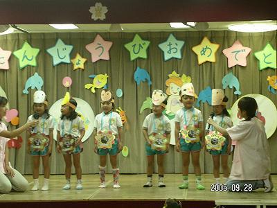 9月のお誕生日会の日なので、幼稚園に行ってきましたお誕生日月でお祝いしてもらう方なのに、なにかお披露目(発表)するというよくある矛盾を追及せずにいきましょう(爆)で、ピカリンの学年(年中)は「桃太郎」の劇をやってくれました年中さんは6人です年少さんは「たまごまごまご」を歌いながら、踊ってくれました年長さんは「みにくいアヒルの子」をやってくれました棒に(紙で書いた)アヒルをつけて劇をしてくれましたで、ピカリンなんだけど・・・桃太郎をするというのは聞いていたけど何の役をするかは「わすれた」という言葉をいつも言われわからなかったのね。で、なんとなくお供のどれか・・・と思ってたんだけど・・・以外や以外主役ですよ!!桃太郎をやったんですよももたろうのお面をつけてます・・・これにはビックリセリフはほとんどなかったけど、とっても嬉しかったわ~で、写真とってたんだけど、デジカメの調子が悪くって・・・写真を撮ると、画面が暗くって・・・中断設定を変えて、ようやく綺麗に取れたのでそのまましてたら今度は、画面がぼやけてきて・・・肝心な時、写真を撮るとぼやけて、誰これ~になってしまって・・・いい写真がない T◇Tビデオを見ようと思うけど、ビデオのヘッドが汚れているらしくこれまた、再生不可能 T◇Tなんだかな~って感じまあ、撮れてないわけではないからいいやっで、ラブリンは・・・・マイペースで1人見てました隣に生まれて間もない赤ちゃん連れのママさんが座っててあれこれと、ラブリンに話しかけてくれ、相手をしてくれましたその後、気づけば、お菓子をもってきてる・・・・違うお母さんがこれまたおすそ分けをしてくれた周りのお母さん方に面倒を見てもらいっぱなしでした^^;;*********************************無添加のカステラです名古屋コーチンの卵で作られたカステラです鳥骨鶏の卵のカステラです味わいが深そうです月に2回受注生産のカステラです抹茶や煎茶を使っているので、緑茶との相性がよさそうです昔から伝わる製法で作られてます。ロールの中にはオレンジジャムが入って、おいしいですよその名も「金のカステラ」です熟成するのを待つお菓子なので、とっても気になりますメロンのように食べごろシールがついてます