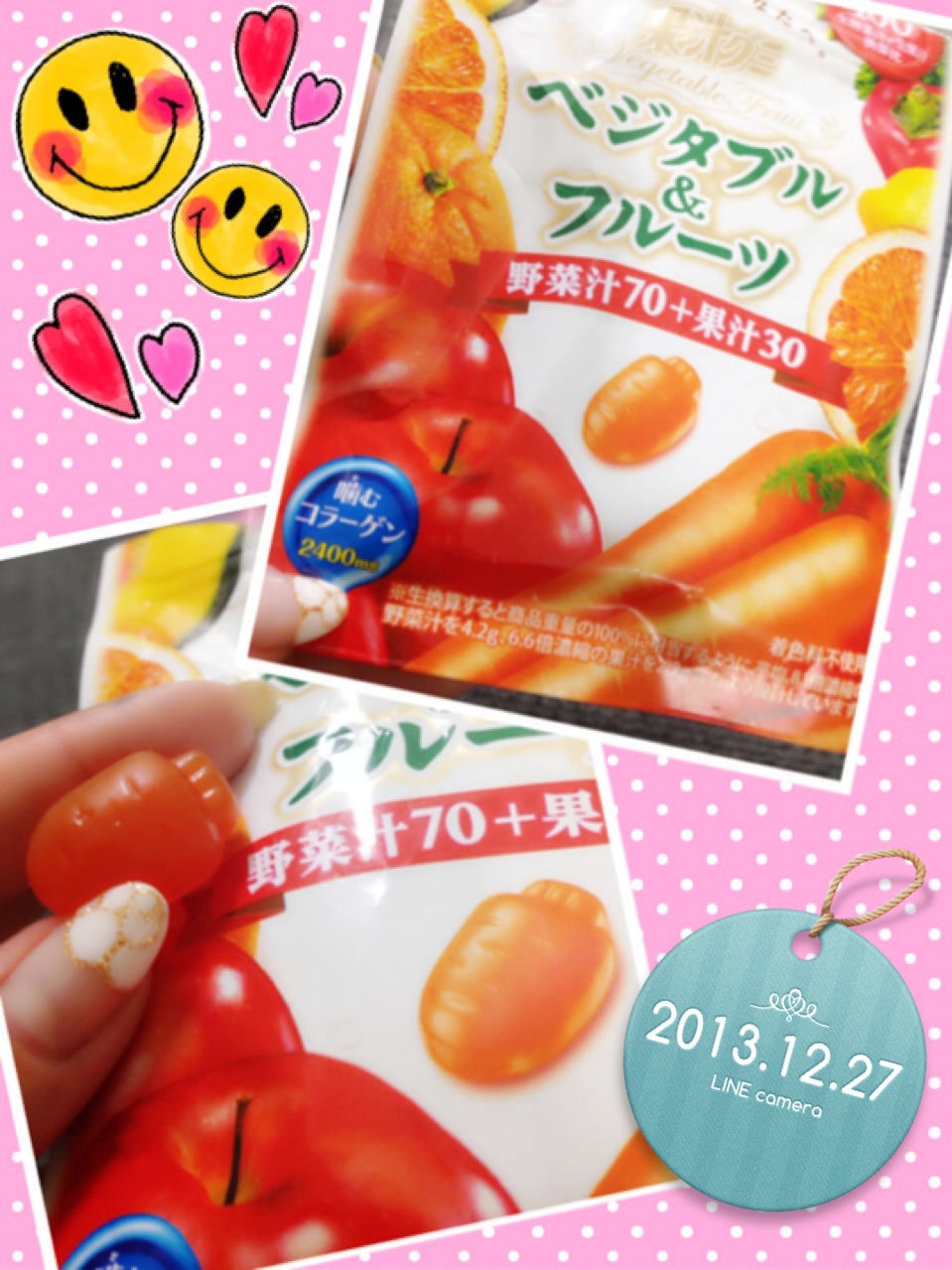 グミ、、、好き? 私は、あんまり好きではありません 、、、でした でも(≧∇≦) 最近、あの食感が好き♪って 思えてきたの 歳かや(笑) 最近、お気に入りのグミ! こちらー(≧∇≦) ↓ ベジタブル&フルーツ 1個1個のカタチ(≧∇≦) 人参のカタチしてるんです! 噛めば噛むほど美味しく感じます♪ これね(≧∇≦) コラーゲンもビタミンも入ってるの♪ 仕事の合間に 小腹が空いた時に 一粒(≧∇≦)お口にポイっ! やめられない!とまらないー! ですw らぶ☆REINA