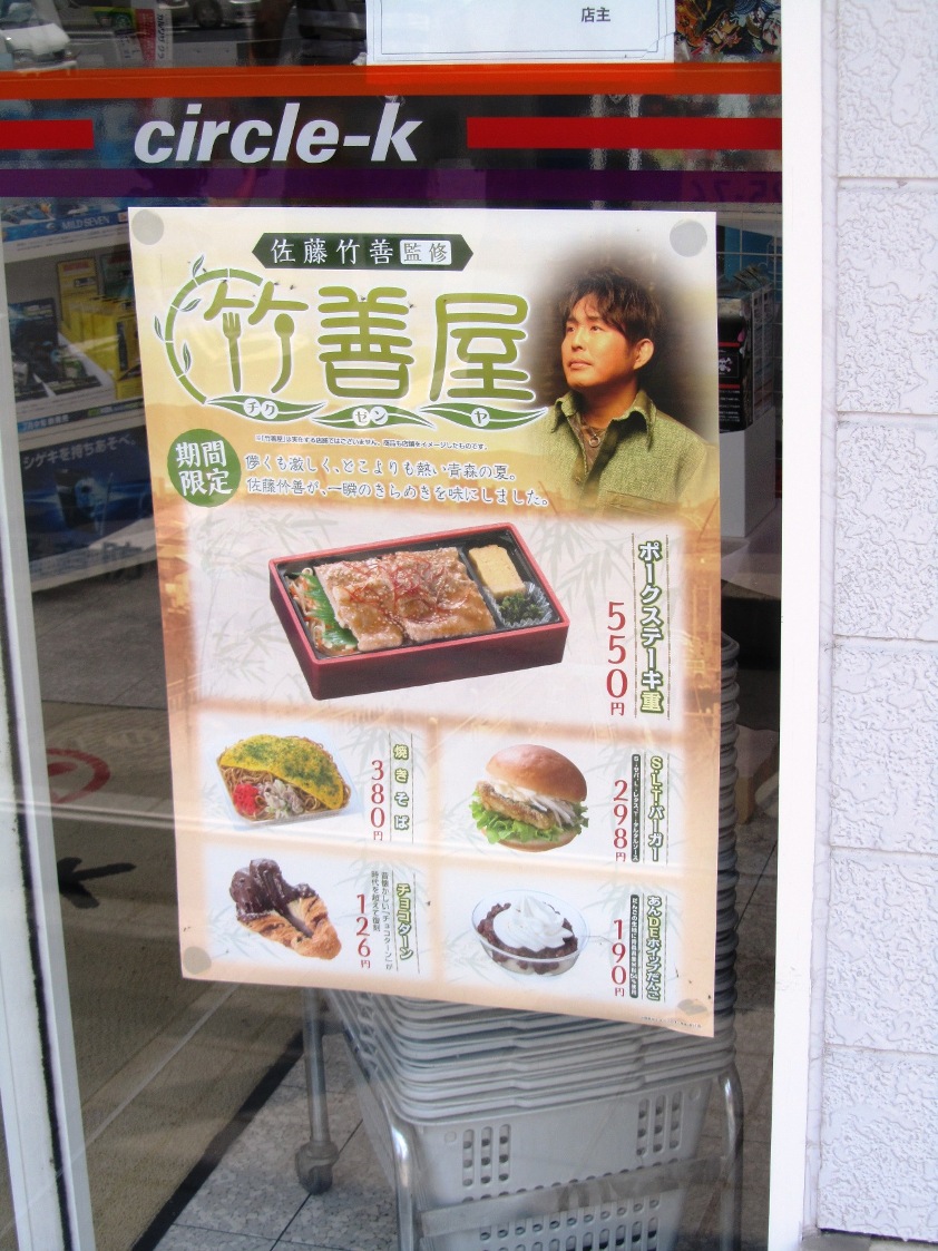「竹善屋」第1弾は北東北3県で購入可能で、当時は秋田市内数店舗、実家の大曲でも足しげく通い、高校生と思われるアルバイトの兄ちゃんに「これ美味しいですよね!」などと話しかけられる程でした第2弾は青森県内のみでの発売当時住んでいた大館市は秋田県と青森県との県境に位置し、週末ともなれば弘前に繰り出していたため容易に手に入れることが出来たのですが、第3弾もやはり青森県内(岩手の一部もでしたが・・・)のみ・・・秋田市からは程遠い距離のため、今回は涙を飲む覚悟でしたが・・・家族、友人の御好意により!!(というより無理やり)日帰りでそのためだけに行く青森の旅、決行!!!友達の分も併せてすごい量の商品を手に入れてきました我が家の分だけでこんな感じ↑碇ヶ関のサークルKは最後の砦で残して、弘前市内に突入しましたが、やはり懸念していたとおり無い商品が しかもサンクスは外観からは全く「竹善屋」を販売しているのかどうかの見分けがつかず(第1弾ではのぼりまであったので・・・)心配になりましたが、次のサークルKでは自動ドア横にポスターを発見↑中にも縦versionと横versionのポスターや、そのお店で手作りした商品をアピールするラミネート等が置いてありました一遍に食べられないので、消費期限が長い探してその後数件ハシゴ(笑)朝の時点で山の中の温度計が35度もあるくらい暑い日だったので、それだけでかなりの疲労感・・・帰りの車は私とチビクマ爆睡でした・・・パパちゃんお疲れ様でしたこれはそれぞれのお店に置いてたのぼり。デザインとか、ほんとセンスがいいです、青森